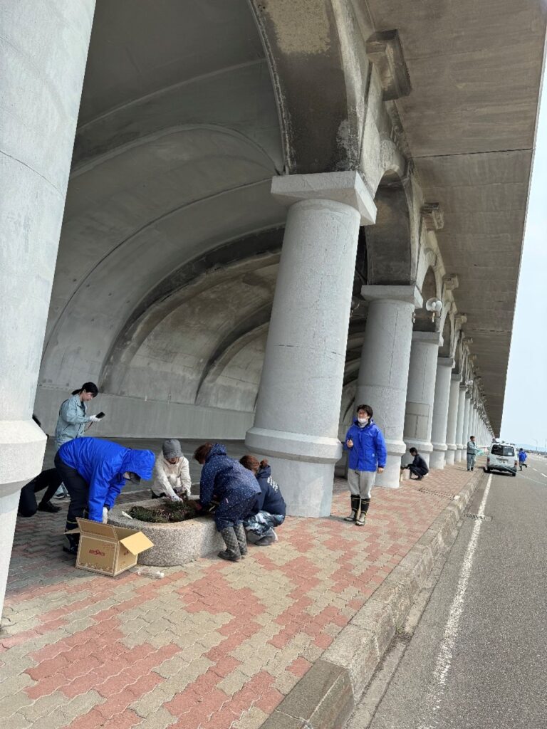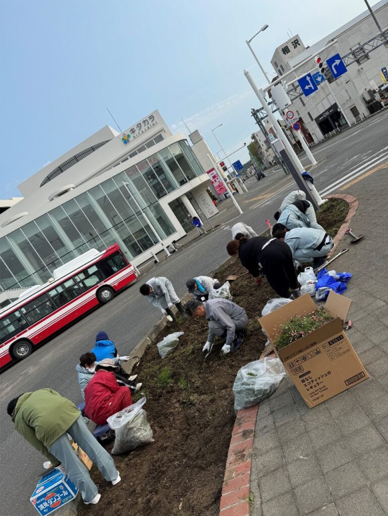 毎年恒例となった北防波堤ドーム内の花壇か所と稚内駅前の花壇2か所にアルメリアの植樹を行いました。